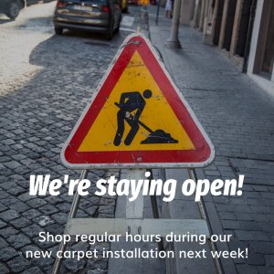 | Open during construction We're sprucing up the place! New carpet is coming in starting TODAY, and we will remain open regular hours. We're laying down carpet tiles in sections so hopefully we can keep operations seamless. (pun intended!) If you've wondered why the store is a little less full than usual lately, well this is why. Once we redo our floors we can't wait to fill up with more beautiful fabrics. |