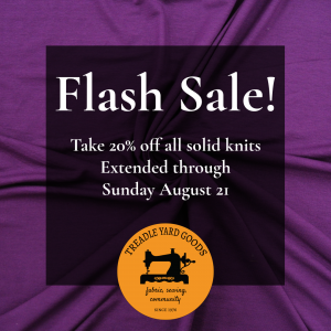 | Flash Knits Sale Ends Soon! Save on knit wardrobe staples! Extended through this Sunday! 20% off all knit solids and tons of prints and patterned ones, too! Shop in the store or use code FLASHKNITS Shop knits here! Plus, keep reading for knit-sewing classes to boost your confidence! |