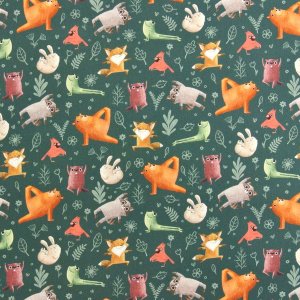 | Yoga Animals! We love this cute new collection of animals doing yoga! The star is the alphabet panel print, but the coordinates are just as fun! This panel would be ideal as a quilt center, or make a cute bag or even a yoga blanket! Shop them here! |