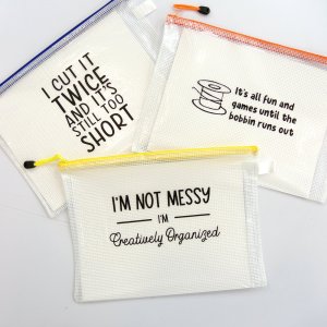Sassy Project Bags This durable 13" x 9" bag is ideal for storing patterns, notes, projects, and more, and the sassy sayings are so relatable! If you order this item online, we'll choose a random design for you. Want to pick your own? Order by phone or in store! |