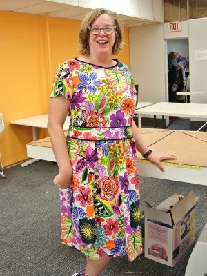 Treadle Make Tuesday Barb used Burda pattern 6339 (with a few modifications) and a fun cotton print for this dress. |