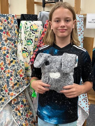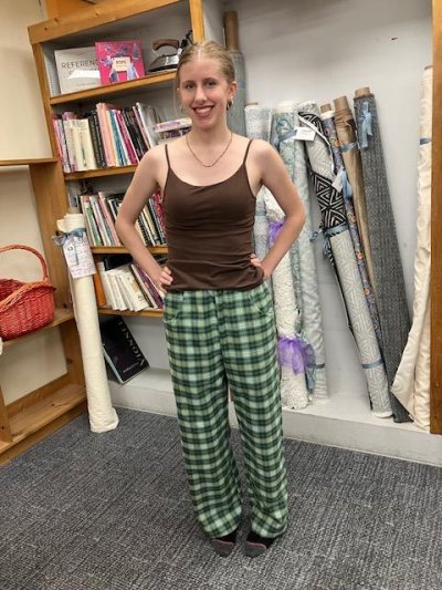 Our summer camps continue! I haven't worked with kids for a long time, and I was prepared to be exhausted... and I am tired, but what a terrific experience! I love everyone from the babiest beginners (okay, eight-year-olds, not babies) to the independent teens, and they are FULL of ambitious ideas and energy. Book bags, pillows, stuffies, dresses and skirts abound, all of them wildly creative and different-- check out Mazarine's self-designed dog stuffy and Rachel's cozy flannel PJ pants!![]() |