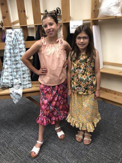 Hannah and Elizabeth have been FANTASTIC campers. These sisters stitched up just about everything: skirts, tops, backpacks, bookmarks, scrunchies and more! |