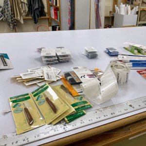 ... and we just received some notions! Here's an unglamorous photo taken while I stickered them. ![]() |