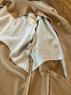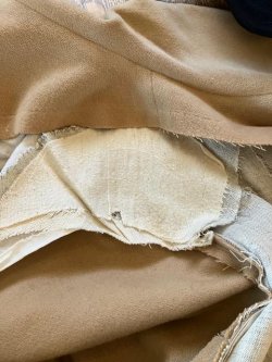 Finally, a simple catch stitch for the hem, that also needed a bit of repair. You may notice the additional creation the hem, indicating that the original owner had the coat shortened. I am so glad she was about my height! |